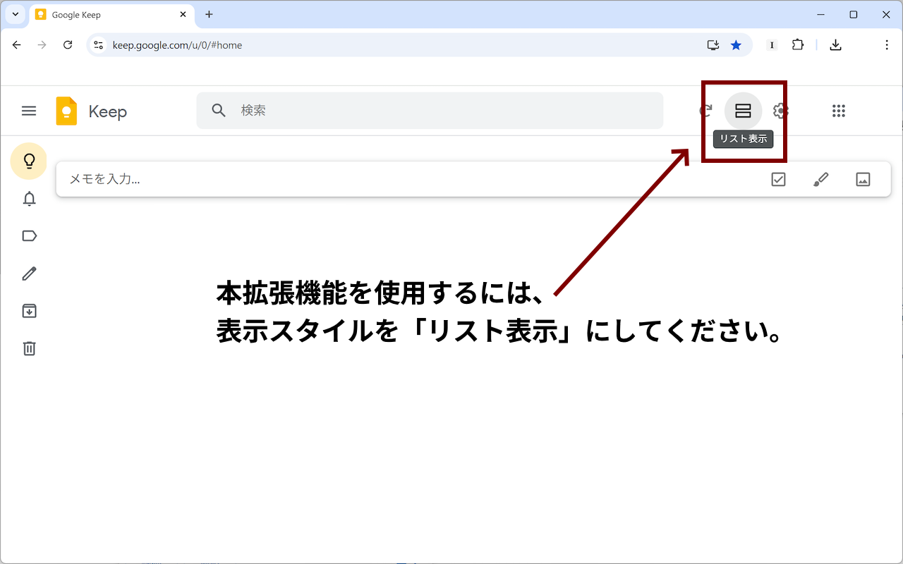 When using this extension, please switch to list view by clicking the button in the upper-right corner of Google Keep.