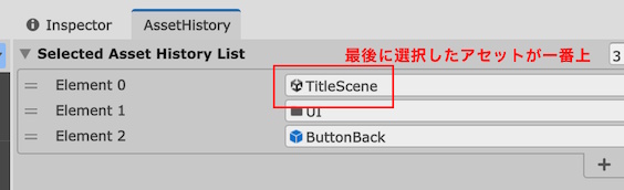 /// 選択したアセットの履歴(variable名の変更にCaution)